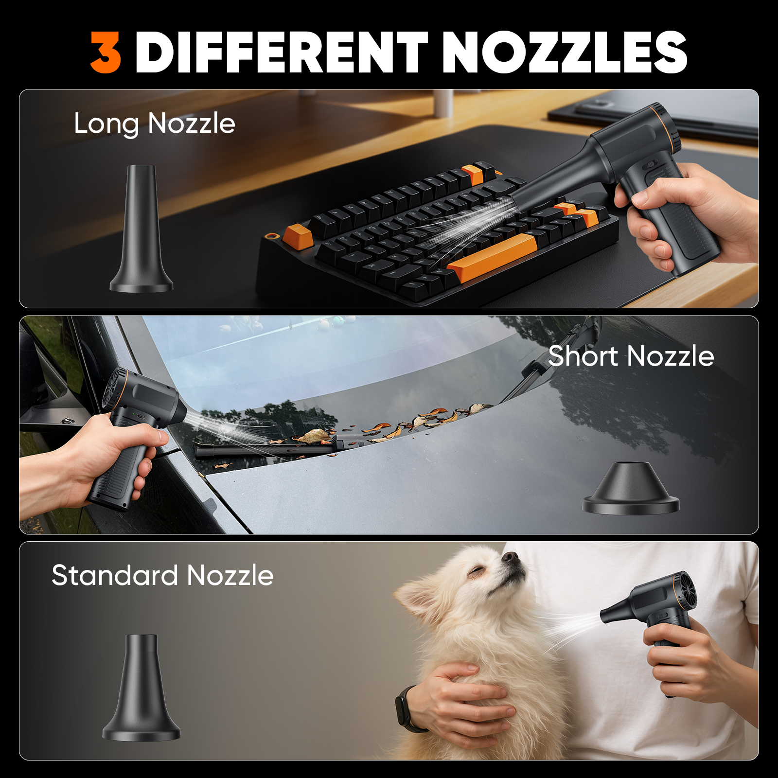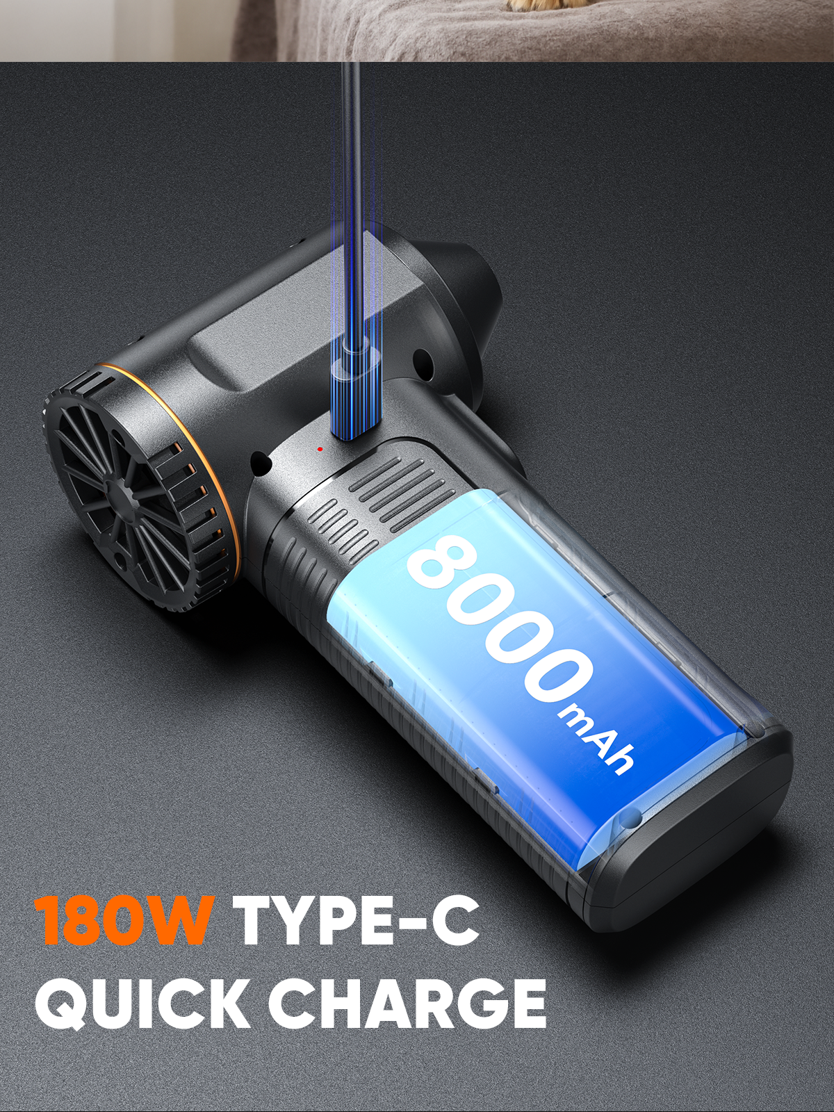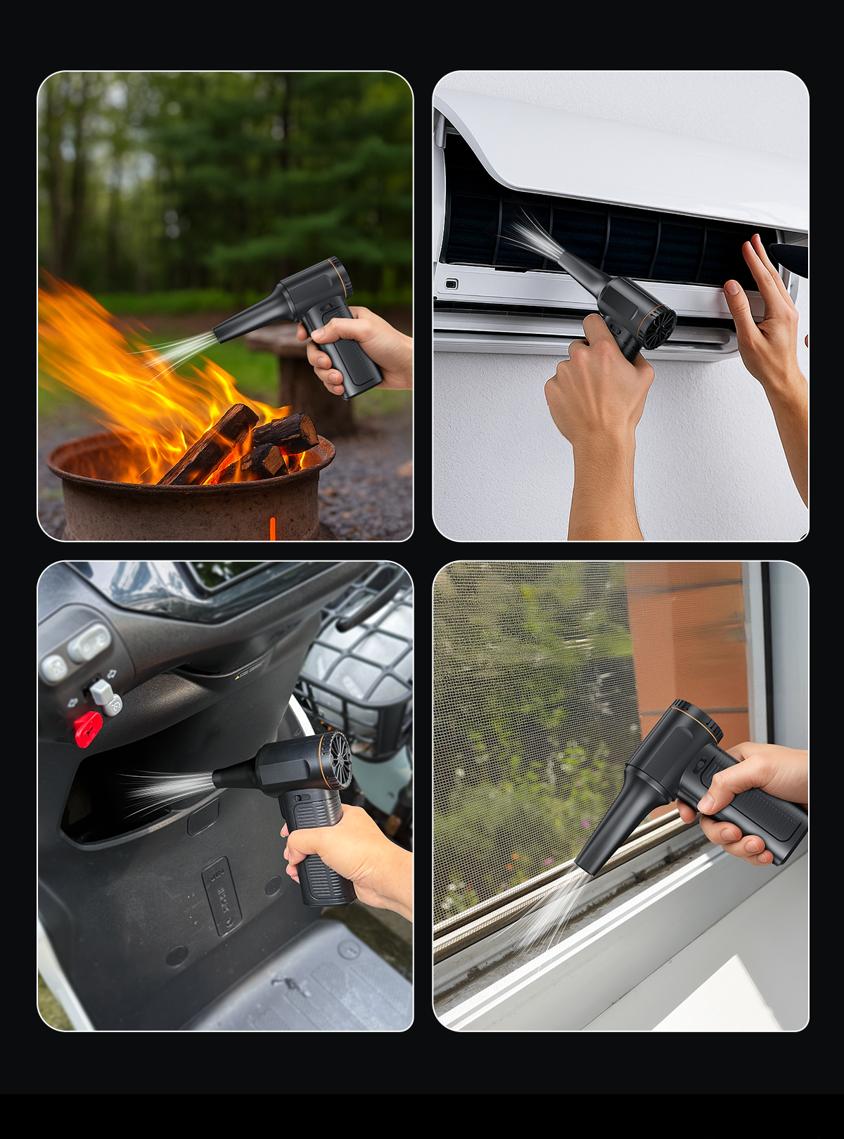 5.【High-Speed Airflow】This versatile cleaning tool is perfect for home, car, and office use. The jet fans guarantee optimal airflow and performance. Its portable design allows you to take it anywhere, whether you're on a camping trip or cleaning.